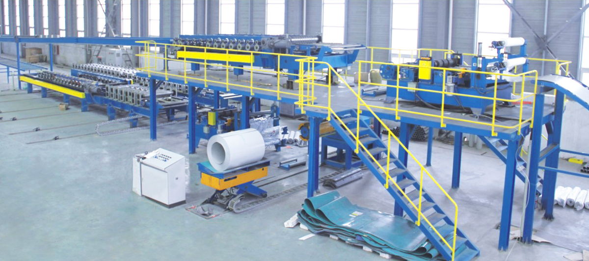 引進聚氨酯板材六組高壓發(fā)泡生產(chǎn)線,可根據(jù)生產(chǎn)環(huán)境溫度和濕度的變化在線調(diào)整混合比例,保證發(fā)泡結(jié)構(gòu)的均勻細膩;雙履帶保障板面的平整度,板面精整度可控制在0.01CM